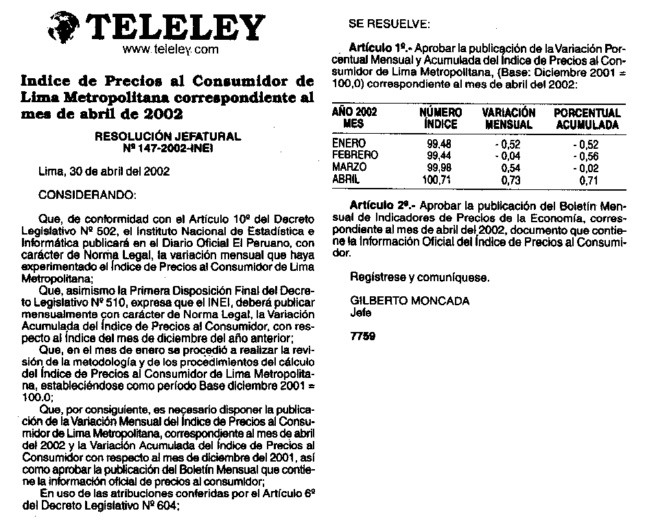 INDICE DE PRECIOS AL CONSUMIDOR DE LIMA METROPOLITANA CORRESPONDIENTE AL MES DE ABRIL DE 2002