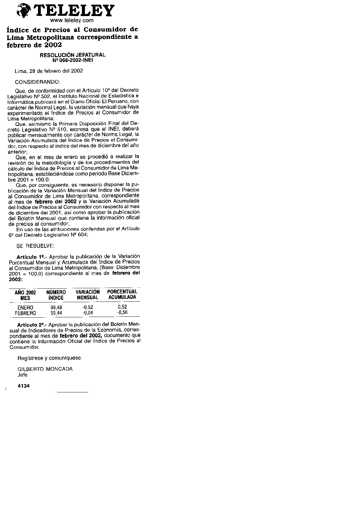 INDICE DE PRECIOS AL CONSUMIDOR DE LIMA METROPOLITANA CORRESPONDIENTE A FEBRERO DE 2002