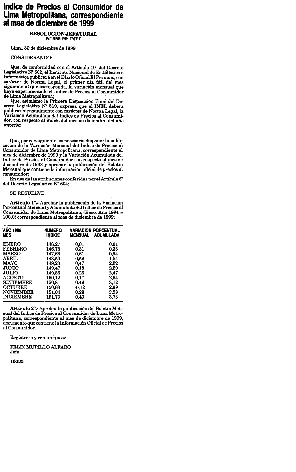 INDICE DE PRECIOS AL CONSUMIDOR DE LIMA METROPOLITANA,CORRESPONDIENTE AL MES DE DICIEMBRE DE 1999