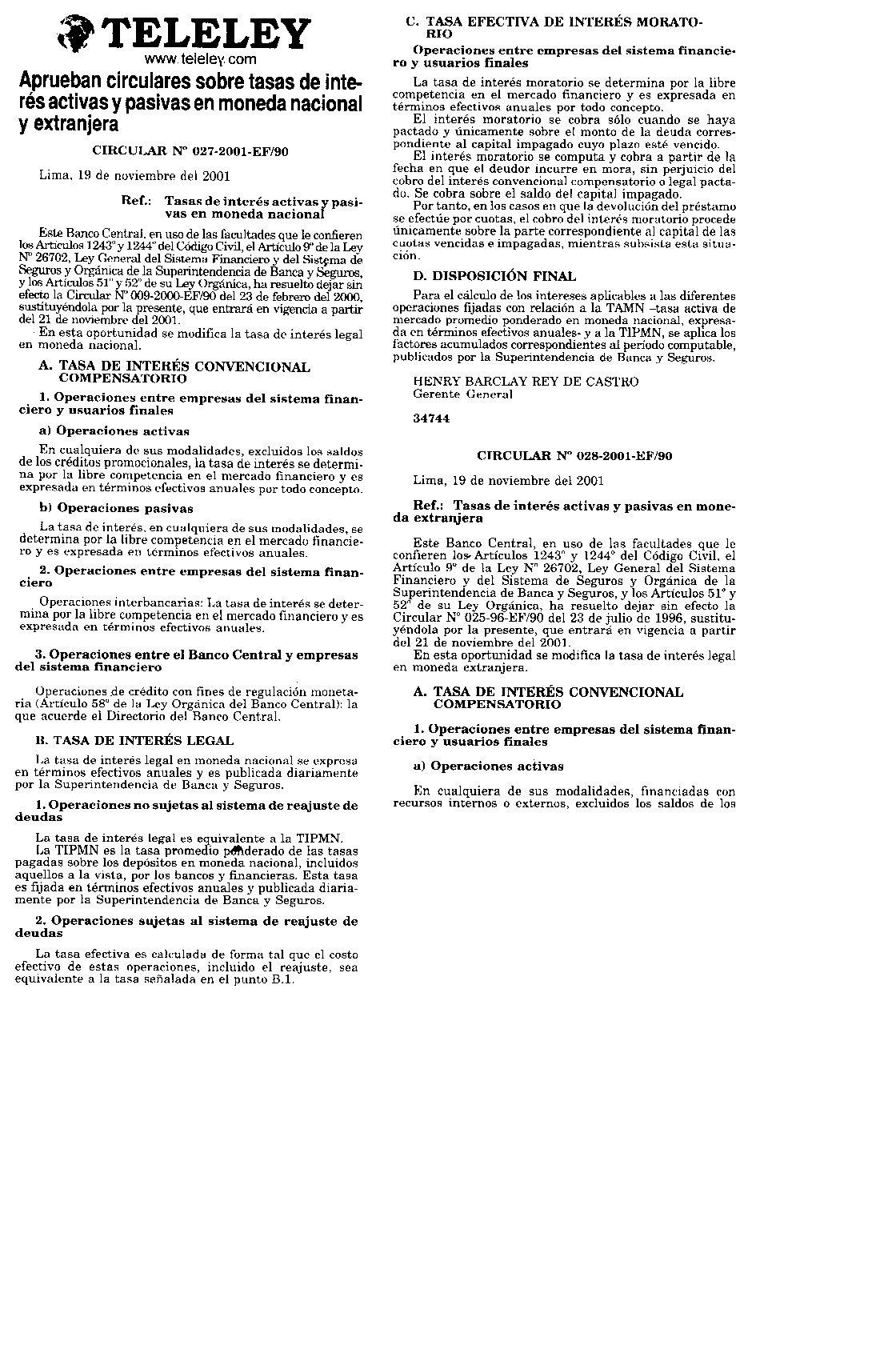 APRUEBAN CIRCULARES SOBRE TASAS DE INTERES ACTIVAS Y PASIVAS EN MONEDA NACIONAL Y EXTRANJERA