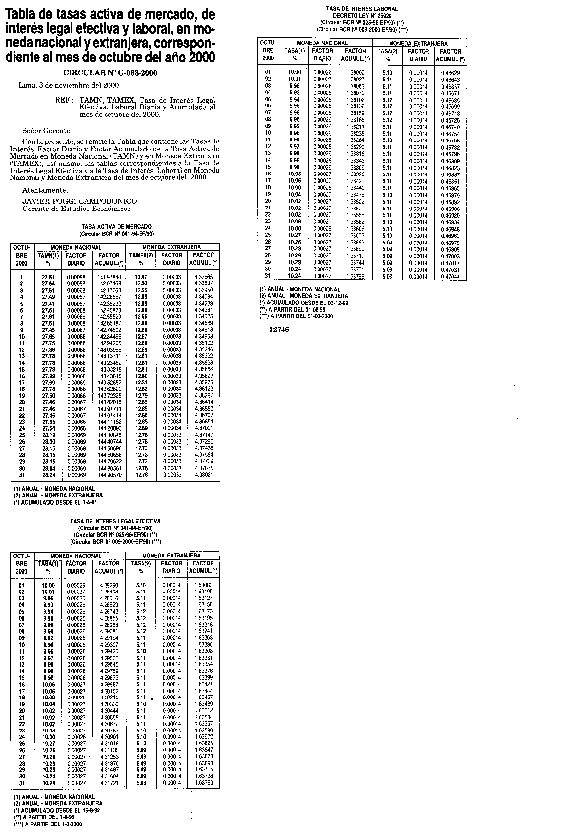 TABLA DE TASAS ACTIVA DE MERCADO, DE INTERÉS LEGAL EFECTIVA Y LABORAL, EN MONEDA