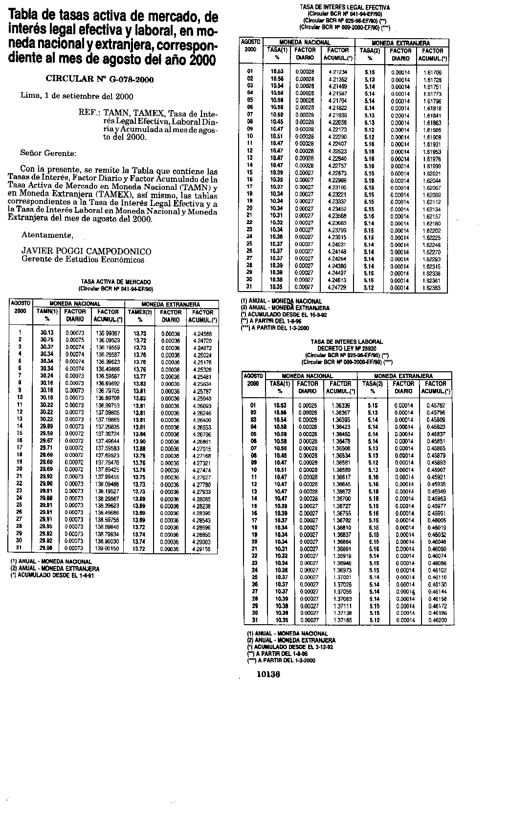 TABLA DE TASAS ACTIVA DE MERCADO, DE INTERÉS LEGAL EFECTIVA Y LABORAL, EN MONEDA