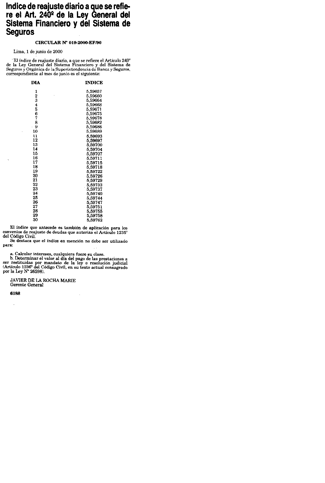 INDICE DE REAJUSTE DIARIO A QUE SE REFIERE EL ART. 240º DE LA LEY GENERAL DEL SISTEMA FINANCIERO Y DEL SISTEMA DE SEGUROS