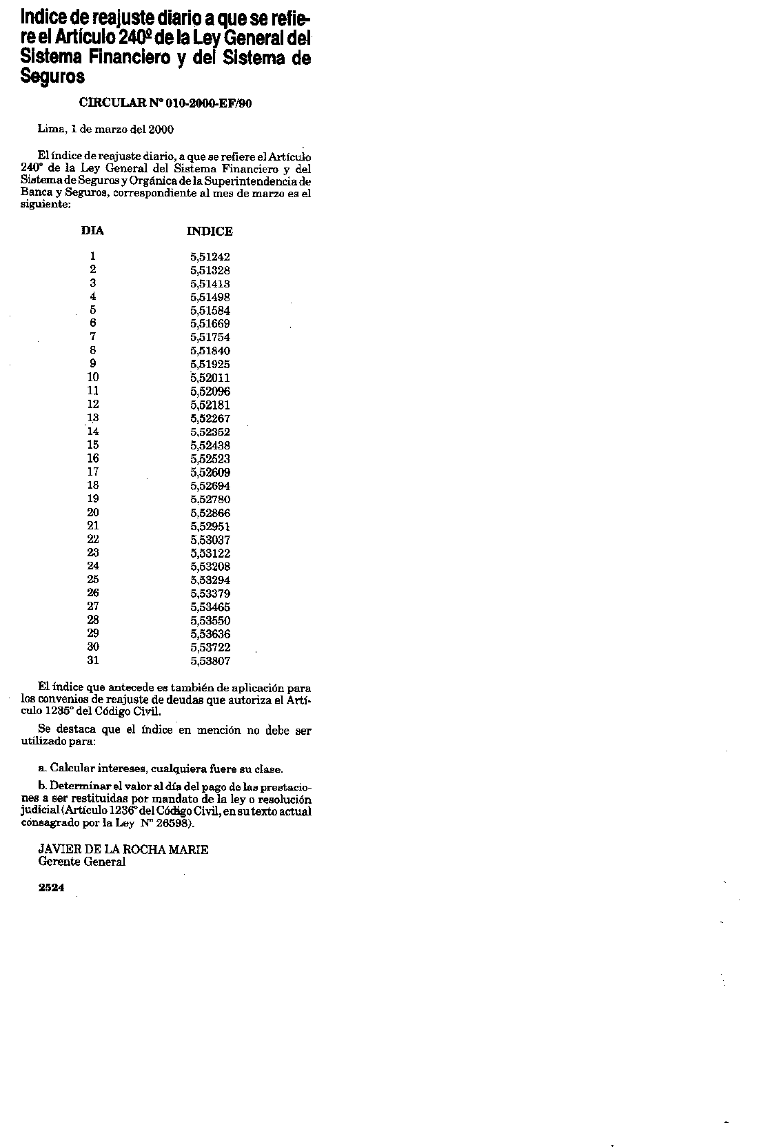 INDICE DE REAJUSTE DIARIO A QUE SE REFIERE EL ARTÍCULO 240º DE LA LEY GENERAL DEL SISTEMA FINANCIERO Y DEL SISTEMA DE SEGUROS