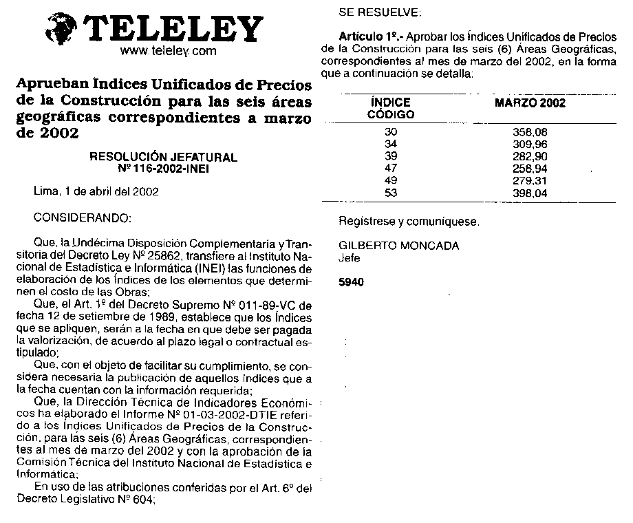 APRUEBAN ÍNDICES UNIFICADOS DE PRECIOS DE LA CONSTRUCCIÓN PARA LAS SEIS ÁREAS GEOGRÁFICAS CORRESPONDIENTES A MARZO DE 2002